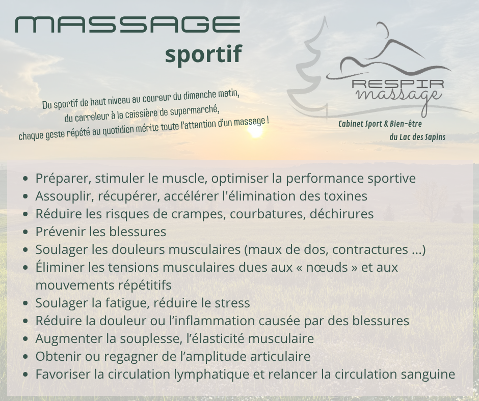 Massage au cabinet Sport & bien-être à CUBLIZE / à votre domicile / en entreprise /en club / ou lors de manifestations