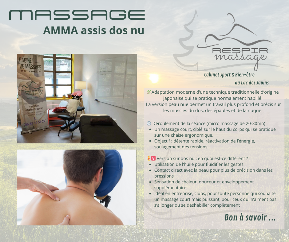 massage sportif, ventouses dynamiques, AMMA assis dos nu, étirements, mobilité, yoga…), votre masseur saura s’adapter et vous apporter un véritable moment de détente et de bien-être !